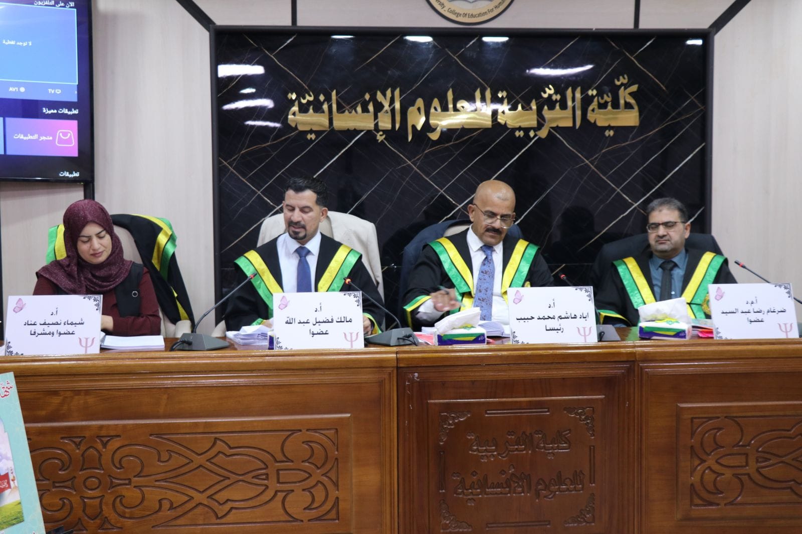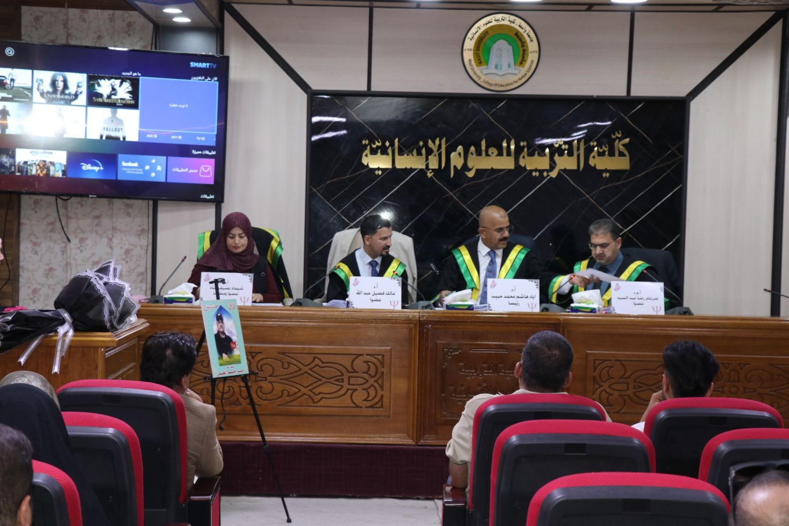 ناقشت كلية التربية للعلوم الانسانية بجامعة واسط رسالة ماجستير بعنوان التفكير الاخلاقي وعلاقته بالنزاهة الذاتية لدى تدريسيي الجامعة