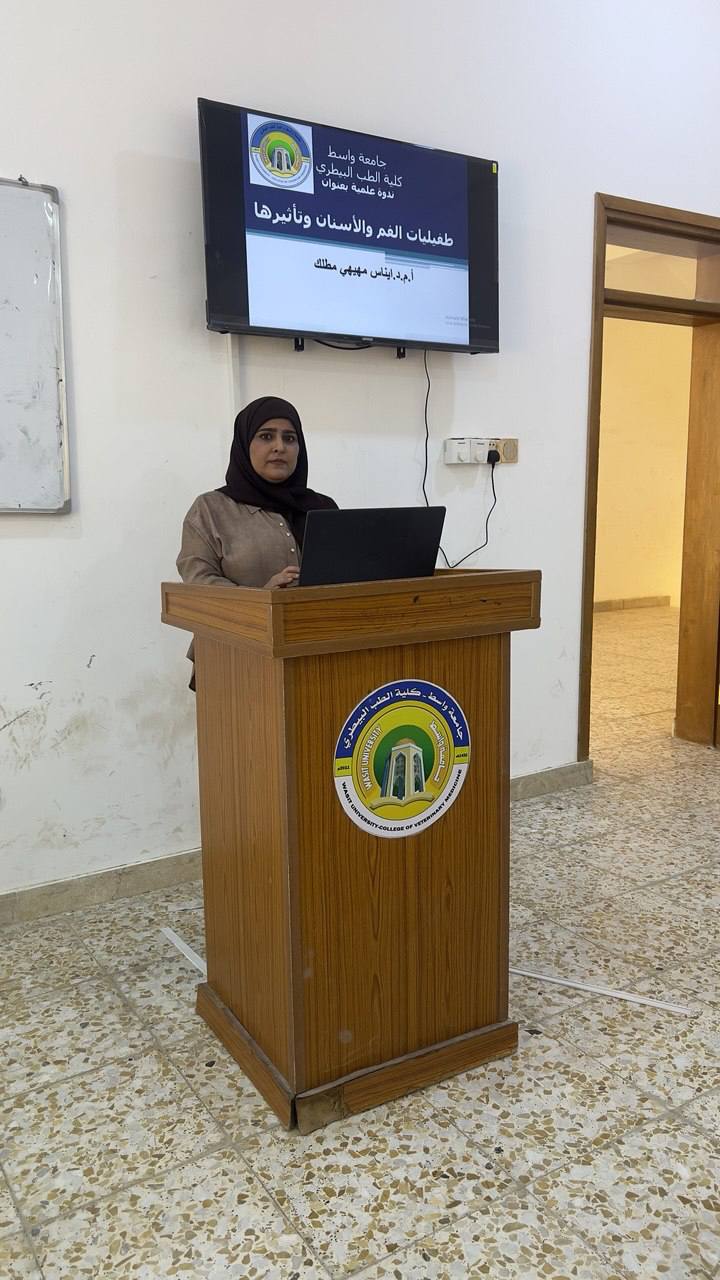 اقامت كلية الطب البيطري في جامعة واسط ندوة بعنوان طفيليات الفم والأسنان وتأثيرها قدمتها ( أ.م.د. ايناس مهيهي مطلك ) بحضور عدد من طلبة الكلية .