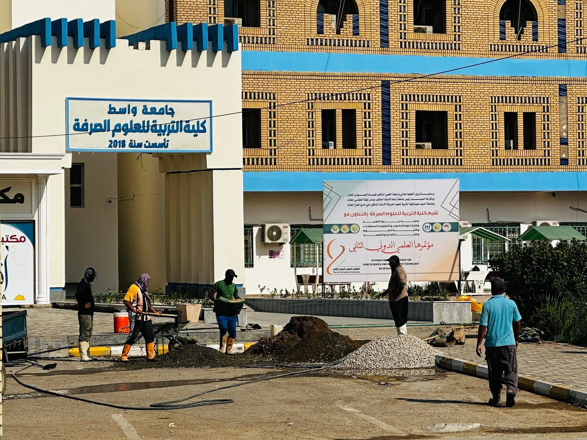 استمرار الأعمال في بناية كلية التربية للعلوم الصرفة رغم عطلة الجمعة