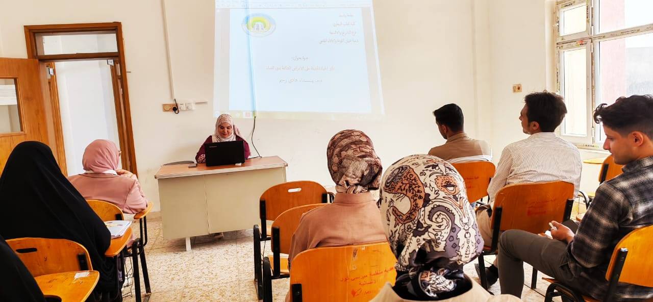 اقام فرع التشريح والانسجة في كلية الطب البيطري جامعة واسط ندوة بعنوان (تأثير الحياة الحديثة على الامراض الشائعة لدى النساء) حاضرت فيها المدرس المساعد ( بيداء هادي رحيم ) بحضور عدد من التدريسيين و موظفي وطلبة الكلية .