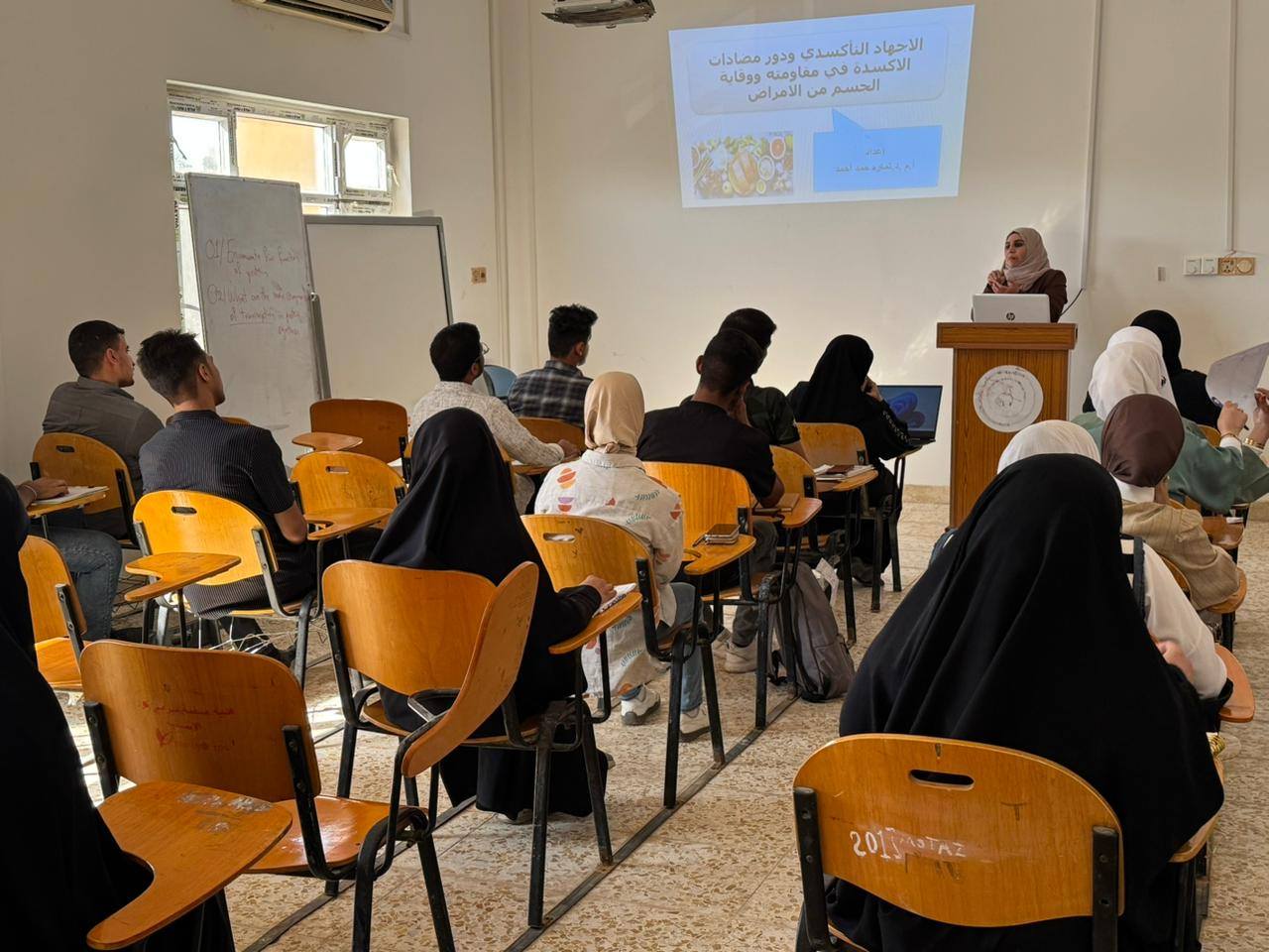 هدفت الندوة، إلى التعرف على عملية الاجهاد التأكسدي في الجسم واسبابه وانواع مضادات الاكسده ودورها في مقاومة الامراض