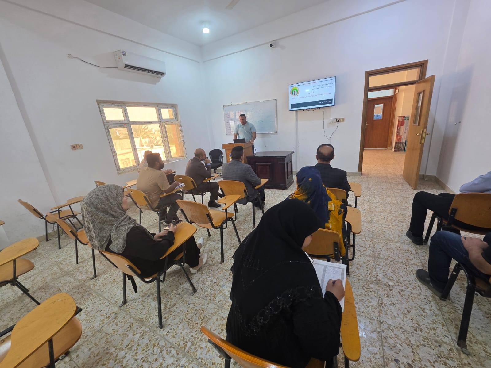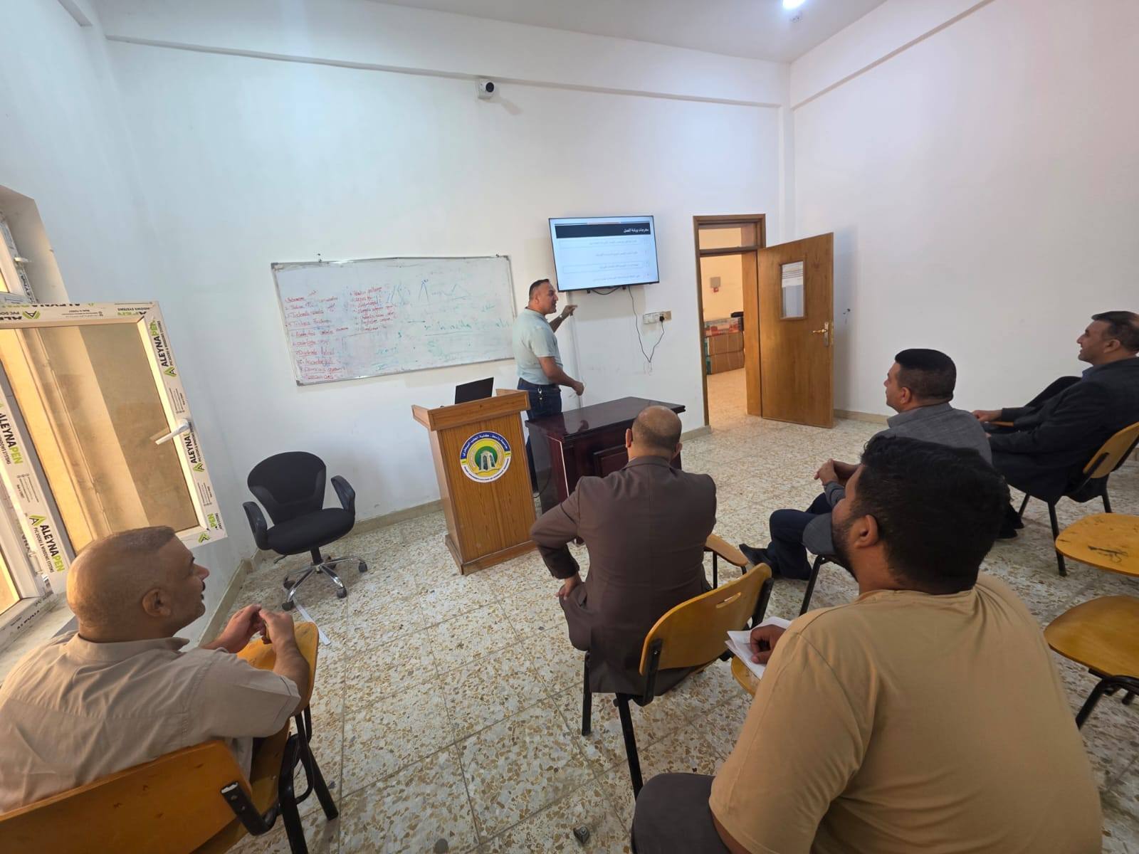 ورشة عمل بعنوان "أسس السلامة المهنية للتعامل مع الأحمال الكهربائية والتمديدات المنزلية" استهدفت الكادر التدريسي و الوظيفي في الكلية و الباحثون في المجالات العلمية والمختبرية و طلبة و خريجي الكلية حاضر فيها المدرس المساعد ( زياد سلمان عودة ).