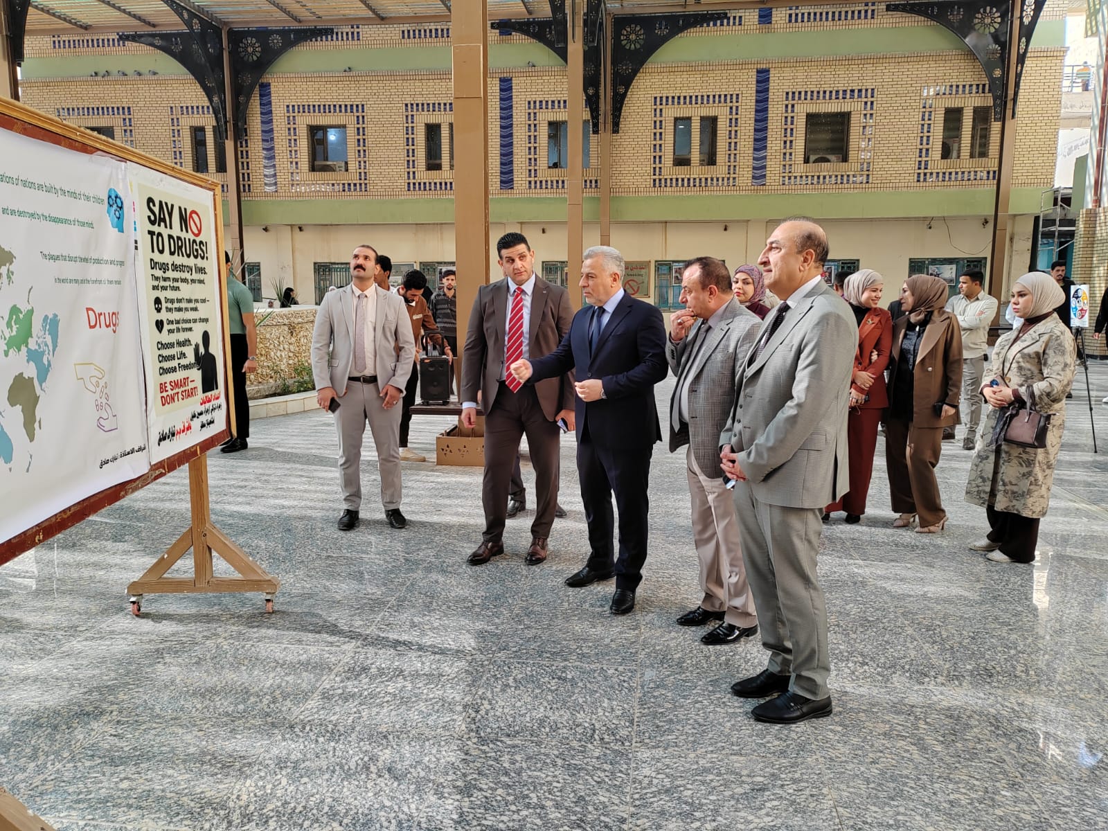 افتتح رئيس جامعة واسط الاستاذ الدكتور عباس لفته العقابي في كلية التربية للعلوم الانسانية معرضا توعويا للحد من ظاهرة المخدرات بحضور المساعد العلمي الاستاذ الدكتور صبيح لفتة , والمساعد الاداري الاستاذ الدكتور محمد شهاب و الاستاذ الدكتور محمود القريشي وعدد من الاساتذة والطلبة .