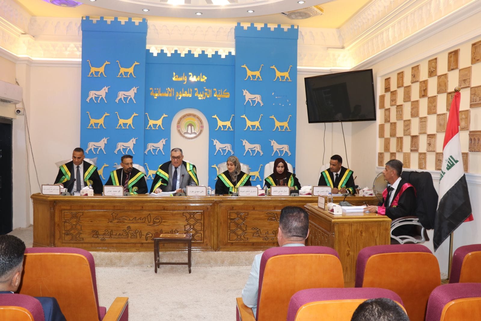 ناقشت كلية التربية للعلوم الانسانية بجامعة واسط اطروحة دكتوراه بعنوان (الخصائص الطقسية للأيام الممطرة وعلاقتها بتكرار ظاهرة الضباب في العراق) ..