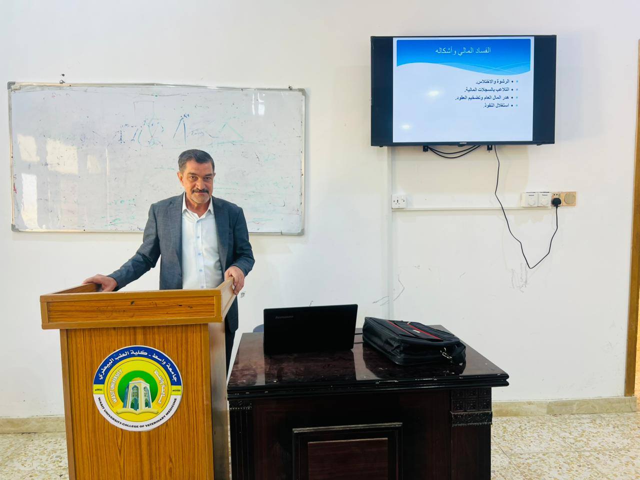 اقامت كلية الطب البيطري في جامعة واسط ندوة بعنوان ( الرقابة المالية ودورها في الحد من الفساد المالي ) حاضر فيها السيد ( باقر حسين نمل ) بحضور عدد من تدريسي وموظفي وطلبة الكلية .
