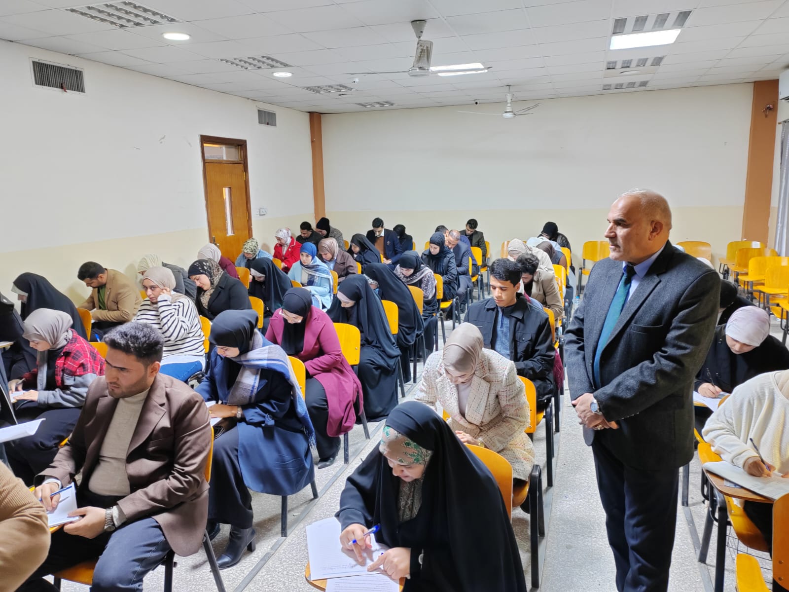 و تفقد عميد الكلية الاستاذ الدكتور محمود حمود القريشي ,القاعات الامتحانية للاطلاع على انسيابية الاجراءات المتبعة من اجل تسهيل هذه المهمة ,وفقا للأسس العلمية والتربوية والتعليمات والتوجيهات التي اكدت عليها وزارة التعليم العالي والبحث العلمي .