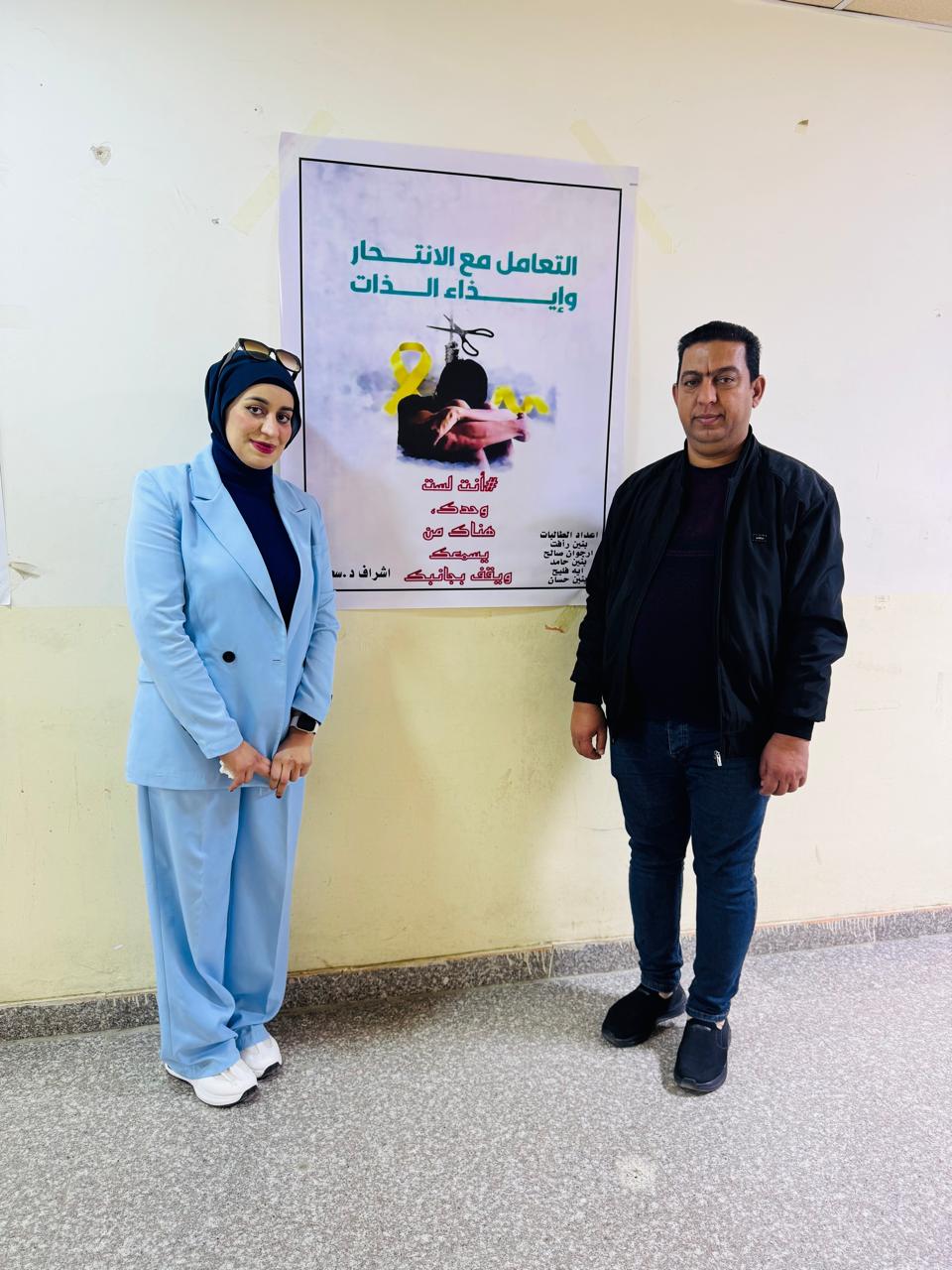 تضمنت الحملة التي اشرف عليها كل من الدكتورة سعاد نجم, والدكتور نصير زاير نشر مجموعة من البوسترات التوعوية للطلبة في مادة الارشاد التربوي والنفسي تتناول مجموعة الموضوعات ذات التأثير في المجتمع ومنها ( المخدرات ، الاكتئاب ، الانتحار ، العنف ، التنمر ، الابتزاز الإلكتروني ) ..