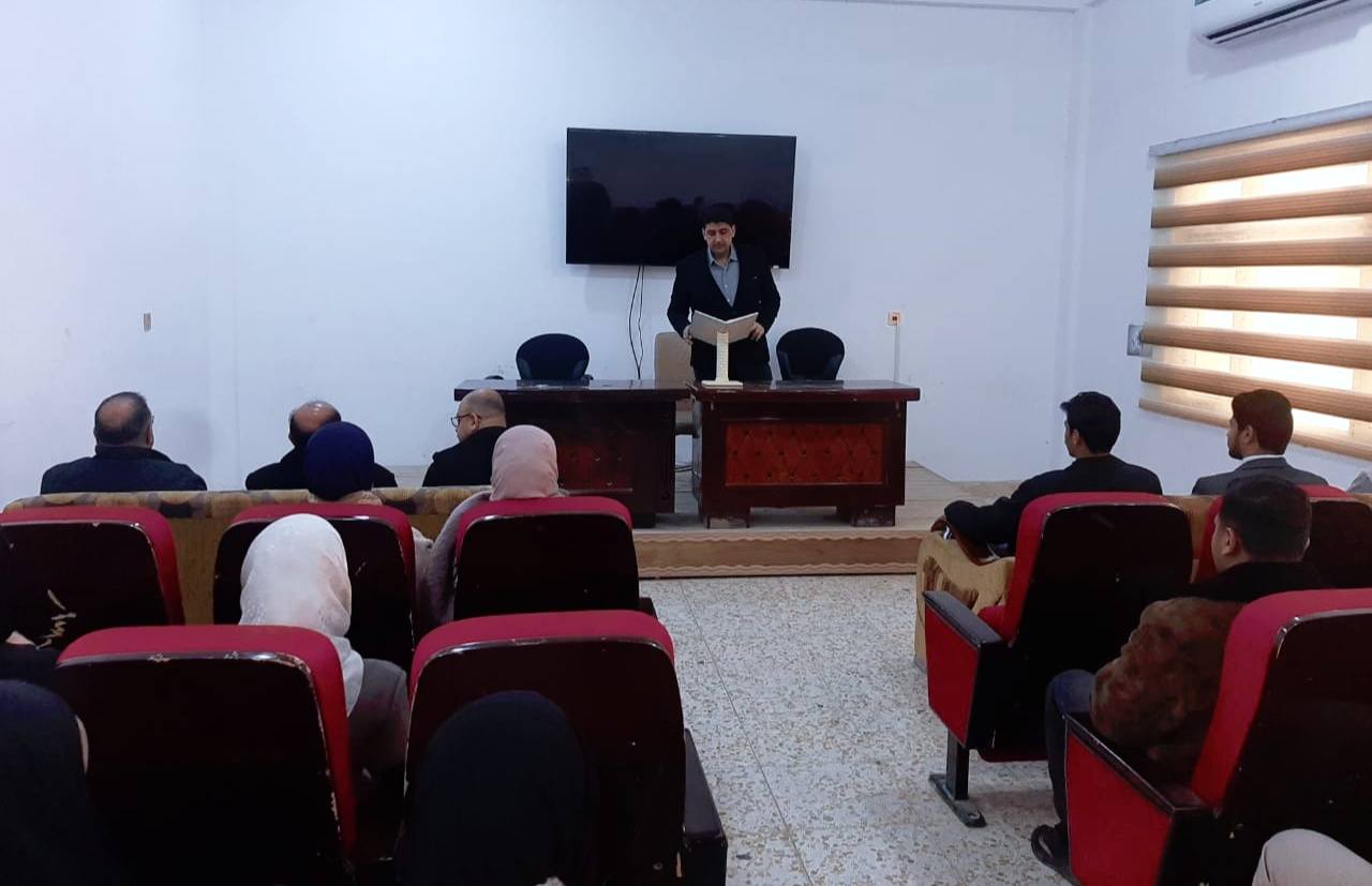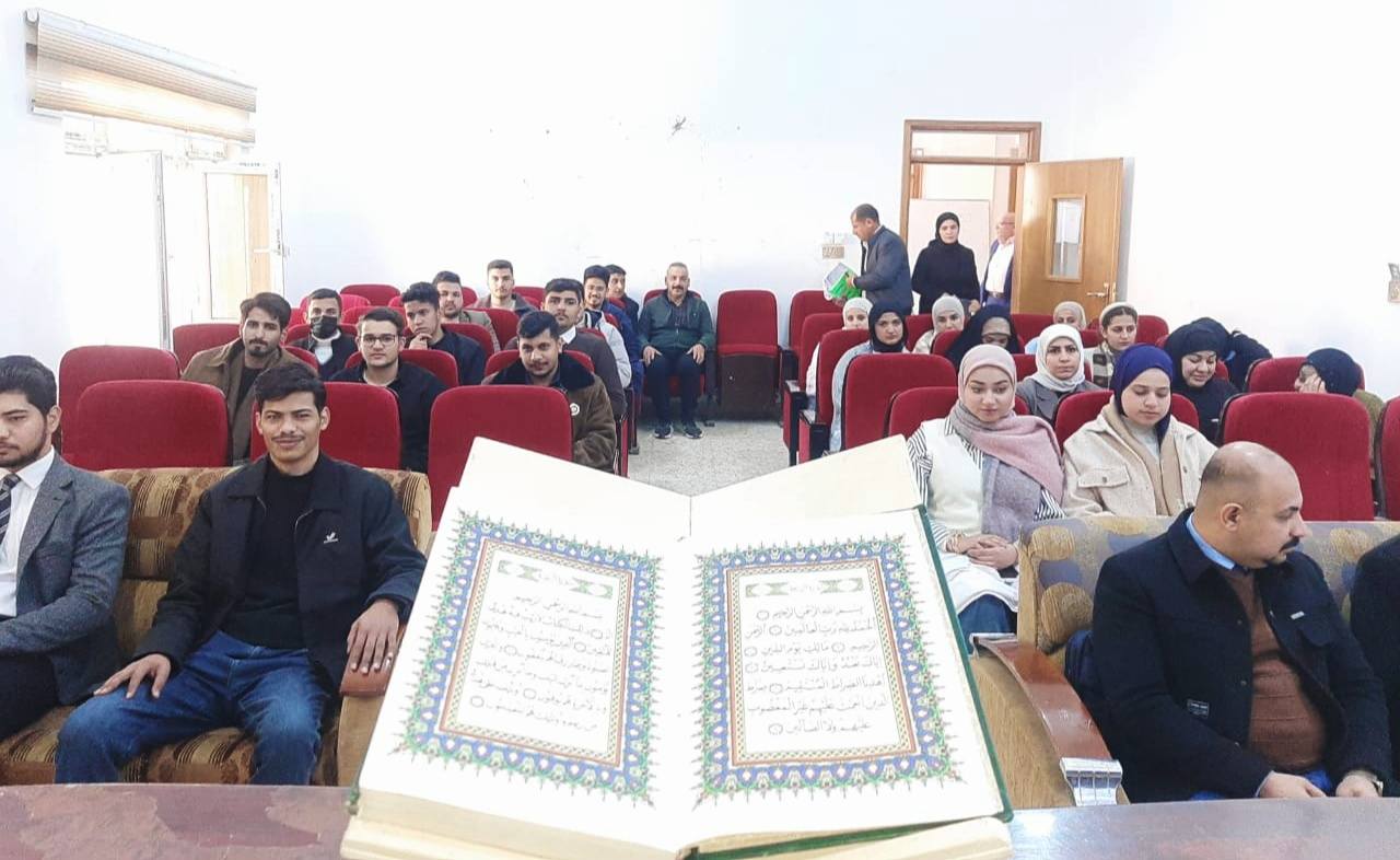 باشراف عميد الكلية الاستاذ الدكتور ( ستار راشد العقابي ) أقامت وحدة حقوق الإنسان بالتعاون مع وحدة العمل التطوعي في كلية الطب البيطري مهرجان قراني، بمناسبة اليوم الوطني للقرآن الكريم، تحت عنوان (ربيع القلوب)، تأكيدًا على مكانة القرآن الكريم في ترسيخ القيم الإنسانية والأخلاقية، وتعزيز ثقافة التسامح والوعي المجتمعي، وبمشاركة نخبة من الأساتذة والطلبة، في أجواء إيمانية عكست أثر القرآن في تهذيب النفوس وبناء الإنسان.