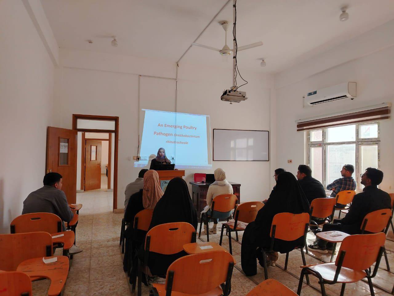 أقامت كلية الطب البيطري ندوة علمية بعنوان (الأمراض البكتيرية في الدواجن )، حاضرت فيها المدرس الدكتور ( سحر عبد الحسن ) ، وذلك ضمن النشاطات العلمية بحضور عدد من موظفي وطلبة الكلية . .