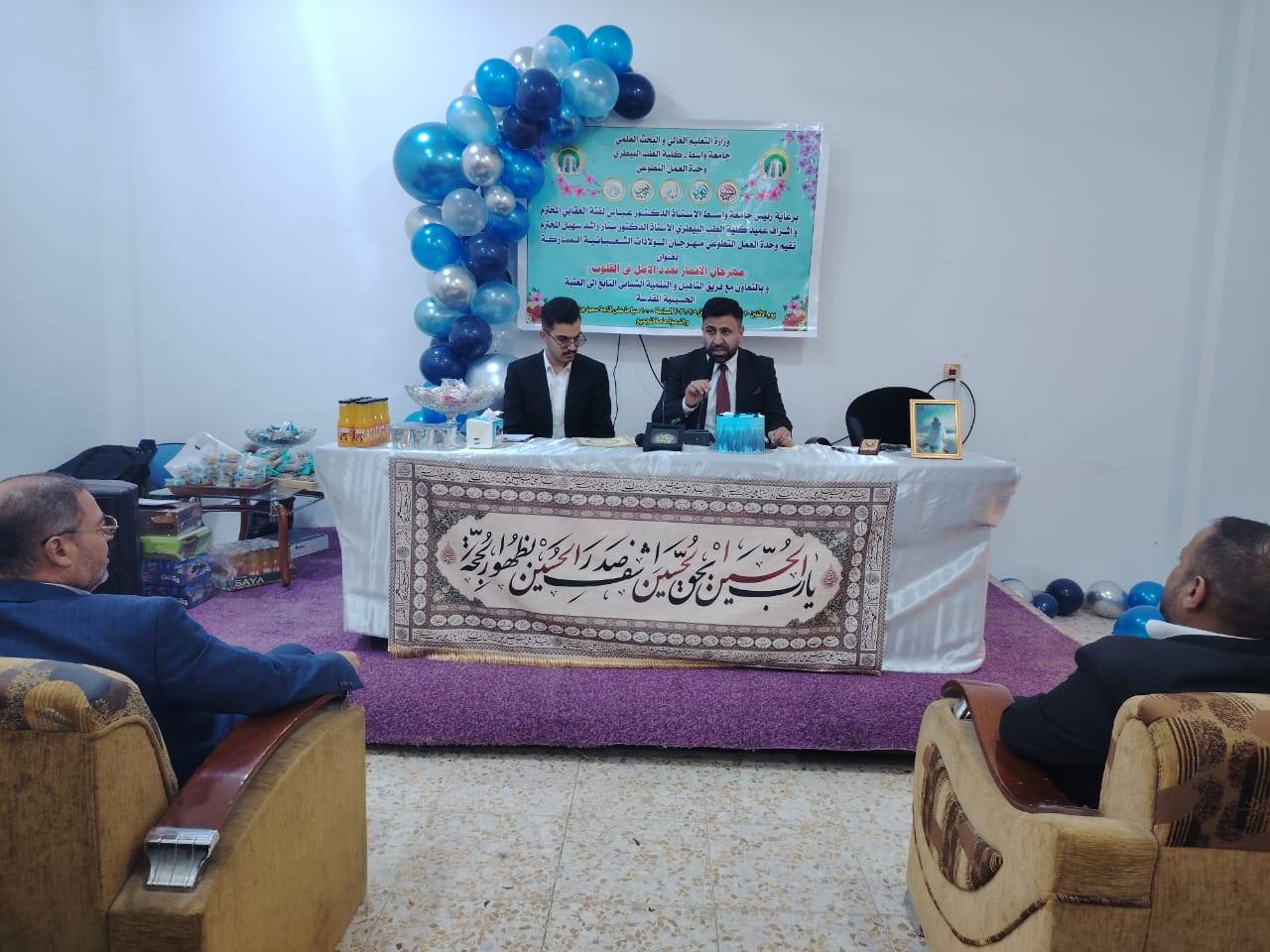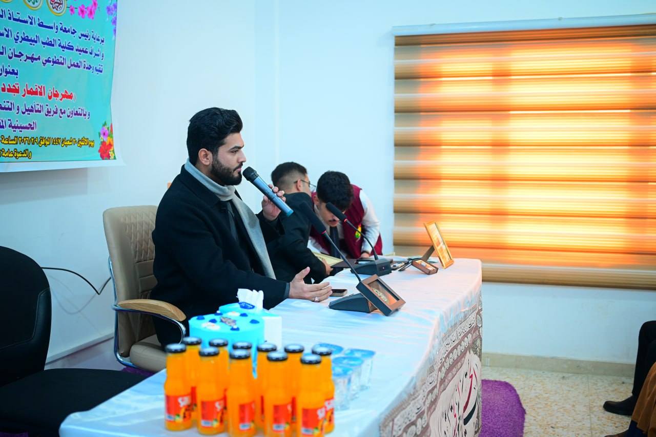 برعايةٍ رئيس جامعة واسط الاستاذ الدكتور ( عباس لفتة العقابي ) وباشراف عميد كلية الطب البيطري الاستاذ الدكتور ( ستار راشد العقابي ) اقامت وحدة العمل التطوعي وبالتعاون مع فريق التاهيل والتنمية الشبابي التابع الى العتبة الحسينية وبالتزامن مع الاسبوع العالمي لريادة الاعمال مهرجان الولادات الشعبانية المباركة احتفاءً بذكرى الولادات العطرة لأئمة أهل البيت (عليهم السلام) في شهر شعبان المعظّم، واستذكارًا لما تمثّله هذه المناسبات المباركة من قيمٍ إيمانيةٍ وأخلاقيةٍ سامية.