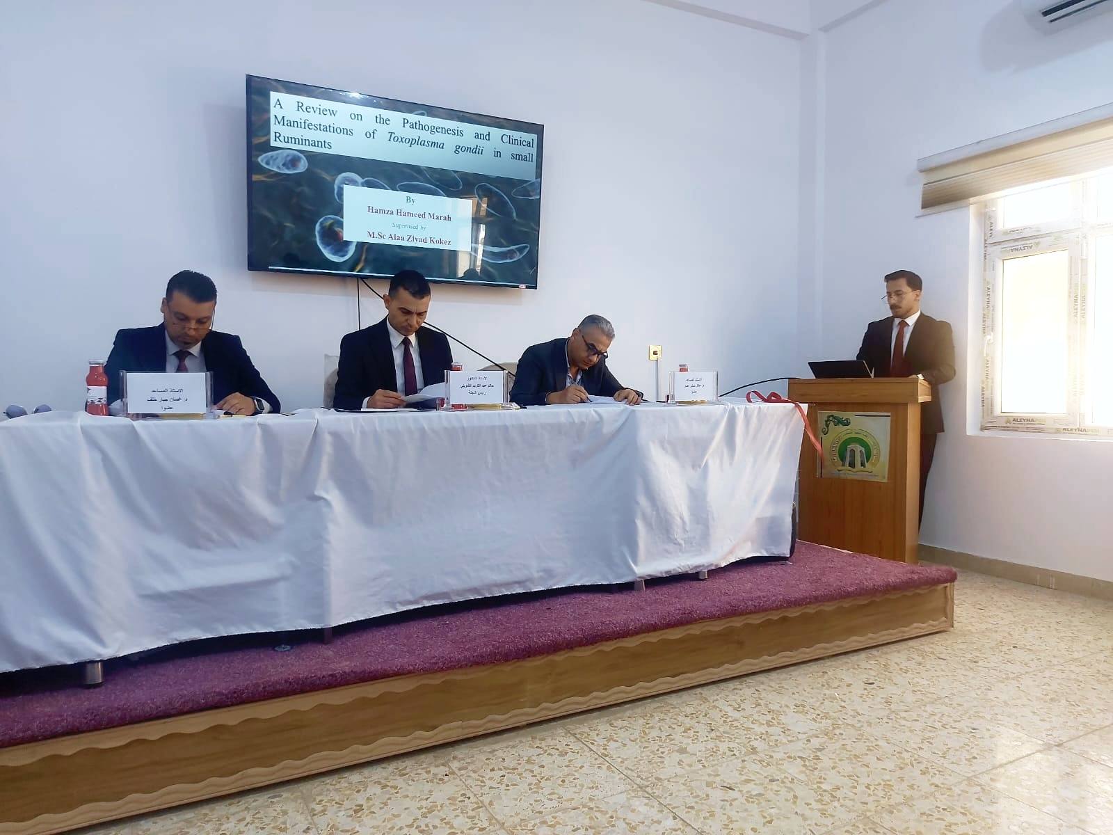 برعاية الأستاذ الدكتور ( ستار رشد سهيل العقابي ) ،عميد كلية الطب البيطري، وبإشراف الاستاذ المساعد الدكتور ( جبار جاسم حمادي، ) معاون العميد للشؤون العلمية، انطلقت يوم الاثنين الموافق ٢٠٢٦/٤/٦ مناقشات بحوث التخرج لطلبة المرحلة الخامسة، وسط أجواء علمية مفعمة بالحماسة والطموح والرغبة في التميز.