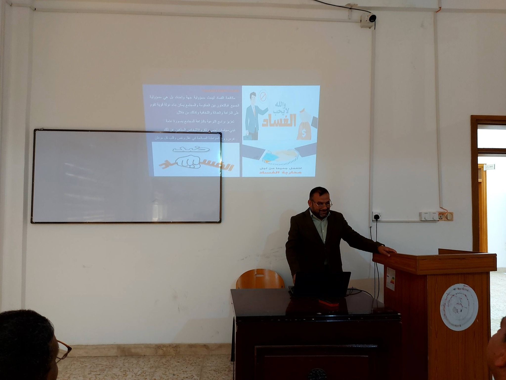 نظّمت كلية الطب البيطري ندوة علمية توعوية بعنوان "مكافحة الفساد ودورها في بناء مجتمع عادل"، بحضور عدد من الأساتذة والباحثين والطلبة، وذلك في إطار تعزيز الوعي المجتمعي بأهمية النزاهة وترسيخ القيم الأخلاقية حاضر فيها ( ا.م.د.عباس حسن خلاطي ) .
