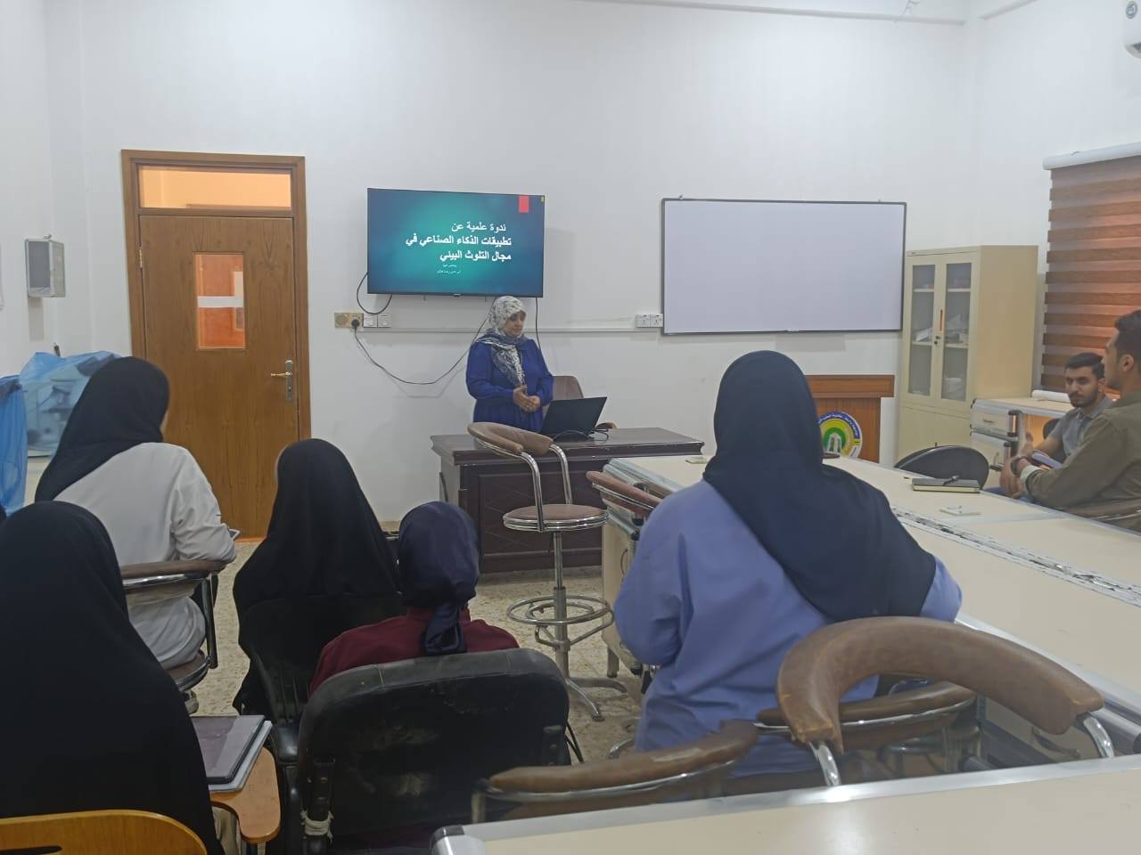 أقامت كلية الطب البيطري في جامعة واسط ندوة علمية بعنوان: “تطبيقات الذكاء الاصطناعي في مجال التلوث البيئي” حاضرت فيها الاستاذ ( هدى رضا هاشم ) بحضور عدد من طلبة الكلية