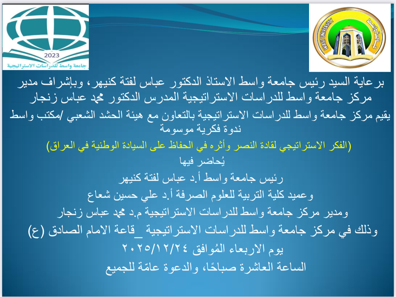 جامعة واسط تعلن نتائج القبول النهائي في الدراسات العليا للعام الدراسي 2025-2026