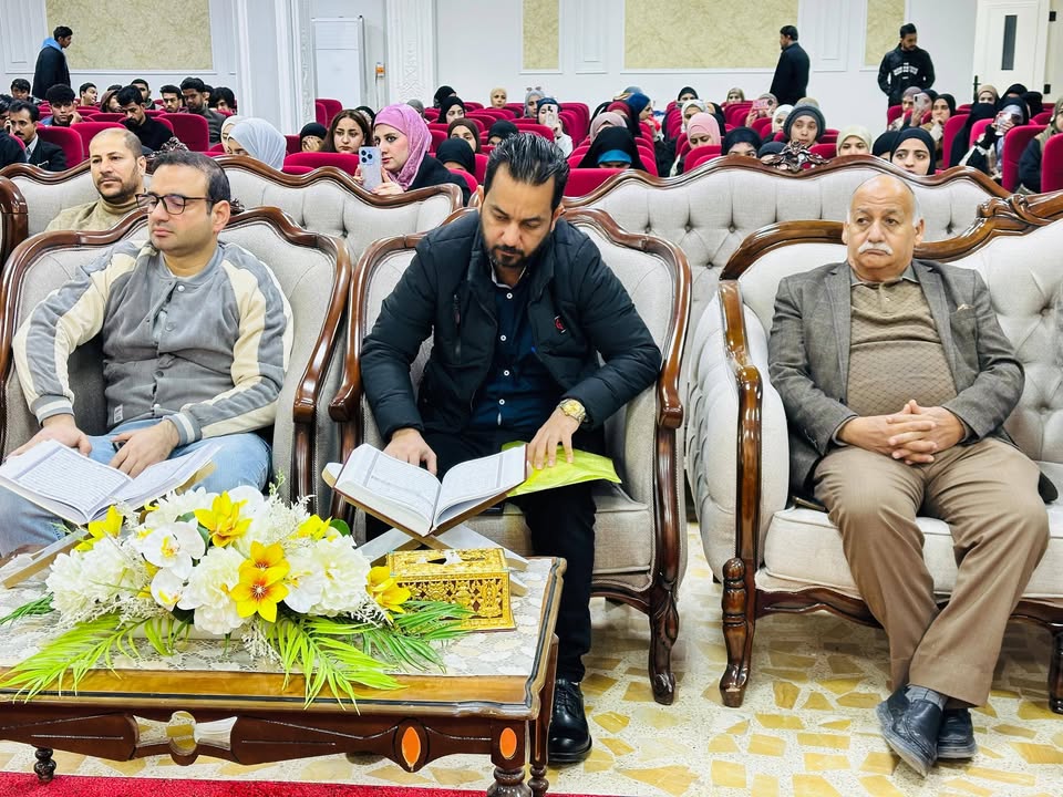 نظّمت شعبة الأنشطة الطلابية في كلية الإدارة والاقتصاد، وبالتعاون مع وحدتي العمل التطوعي والتعليم المستمر، مهرجان (ربيع القلوب) احتفاءً باليوم الوطني للقرآن الكريم، وبمشاركة نخبة من القرّاء، وبحضور أكاديمي وثقافي واسع.ويهدف المهرجان إلى ترسيخ القيم القرآنية وتعزيز الارتباط بالقرآن الكريم بوصفه منهجًا للحياة، ونشر ثقافة التلاوة والتدبر بين الطلبة، إضافة إلى إحياء المناسبات الدينية التي تسهم في بناء الوعي الروحي والأخلاقي داخل الوسط الجامعي.وشارك في المهرجان، كل من القراء مصطفى معيوف، #خالد معيوف، #علي أكرم نعيس، #علي عبد الجبار شمخي، #عباس أزهر، فضلًا عن مشاركة المدرس الدكتور #زين العابدين حميد، الذين قدّموا تلاوات عطرة نالت إعجاب الحضور.