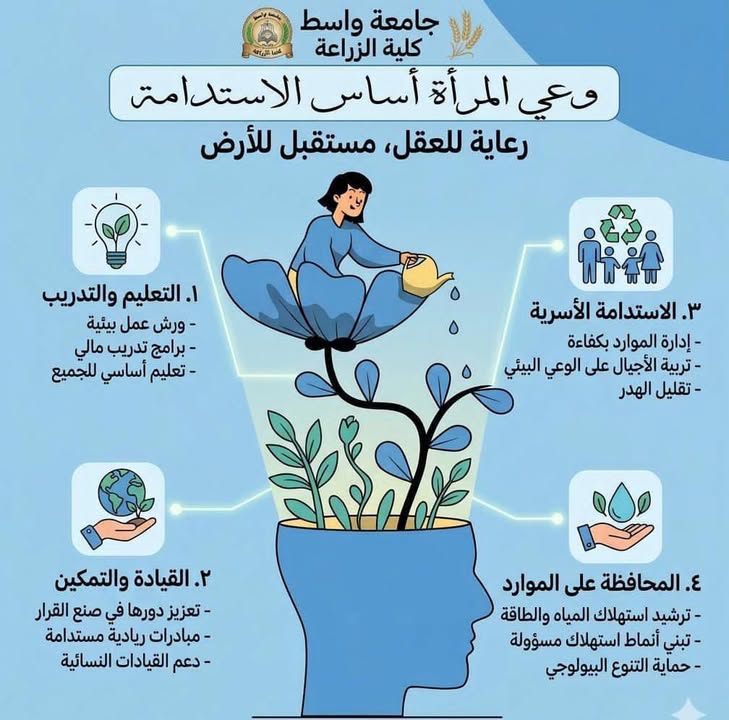 أقامت وحدة شؤون المرأة في كلية الزراعة بجامعة واسط حملة توعوية بعنوان (وعي المرأة أساس الاستدامة) تهدف الحملة، إلى تسليط الضوء على الدور الحيوي الذي تؤديه المرأة في بناء مجتمع واعٍ قادر على مواجهة التحديات البيئية والاقتصادية والاجتماعية إذ تُعدّ المرأة عنصراً أساسياً في تحقيق التنمية المستدامة من خلال مشاركتها الفاعلة في مختلف مجالات الحياة.وتناولت الحملة عدداً من المحاور المهمة من أبرزها دور المرأة في نشر الوعي البيئي داخل الأسرة والمجتمع من خلال تشجيع السلوكيات الإيجابية التي تسهم في الحفاظ على البيئة مثل ترشيد استهلاك المياه والطاقة والاهتمام بالمساحات الخضراء والحد من الممارسات التي تؤدي إلى التلوث البيئي.أوصت المدة التأكيد على أهمية تمكين المرأة وتعزيز وعيها العلمي والمجتمعي، لما لذلك من أثر فاعل في دعم مسارات التنمية المستدامة وتحقيق التوازن بين متطلبات التنمية والحفاظ على البيئة، بما يسهم في بناء مجتمع أكثر وعياً واستدامة.