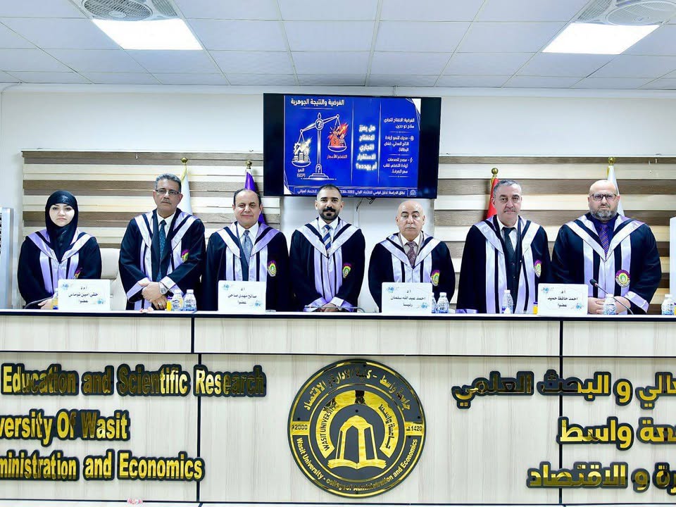 . أطروحة دكتوراه في كلية الإدارة والاقتصاد.ناقشت كلية الإدارة والاقتصاد في جامعة واسط أطروحة دكتوراه للطالب #سجاد شاكر علي العابدي بعنوان (أثر الانفتاح التجاري في بعض مؤشرات الاستقرار الاقتصادي – تركيا حالة دراسية مع إشارة خاصة للعراق).تناولت الأطروحة العلاقة بين الانفتاح التجاري وبعض مؤشرات الاستقرار الاقتصادي الكلي في تركيا والعراق، مع تحليل طبيعة هذا الارتباط.وهدفت الدراسة إلى بيان دور الانفتاح التجاري كقناة للانفتاح على العالم الخارجي، عبر توسيع الأسواق وتعزيز الكفاءة الإنتاجية وجذب الاستثمار الأجنبي.كما توصلت إلى أن للانفتاح التجاري آثاراً متباينة (إيجابية وسلبية) على الاستقرار الاقتصادي، اعتماداً على طبيعة الاقتصاد والسياسات المتبعة، مع توضيح أسباب ذلك.وأوصت بتبني سياسة انفتاح تجاري تدريجية ومدروسة في العراق، مقرونة بتنويع القاعدة الإنتاجية وتفعيل أدوات السياسة النقدية للحد من الصدمات الخارجية وتحقيق الاستقرار الاقتصادي المستدام.