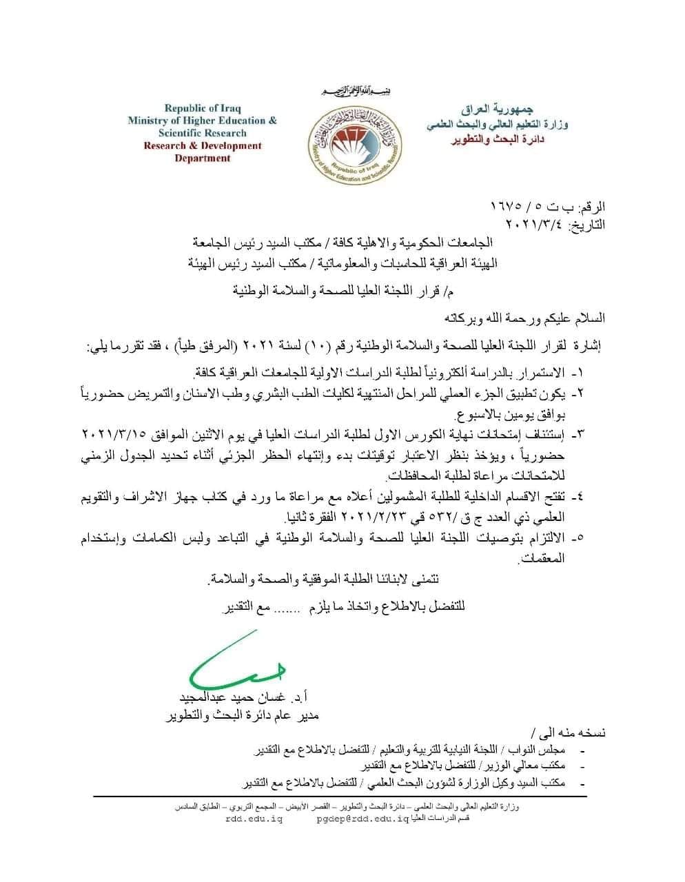 جامعة واسط تقرر تأجيل امتحانات الفصل الدراسي الاول للدراسات العلياتعلن رئاسة جامعة واسط عن...