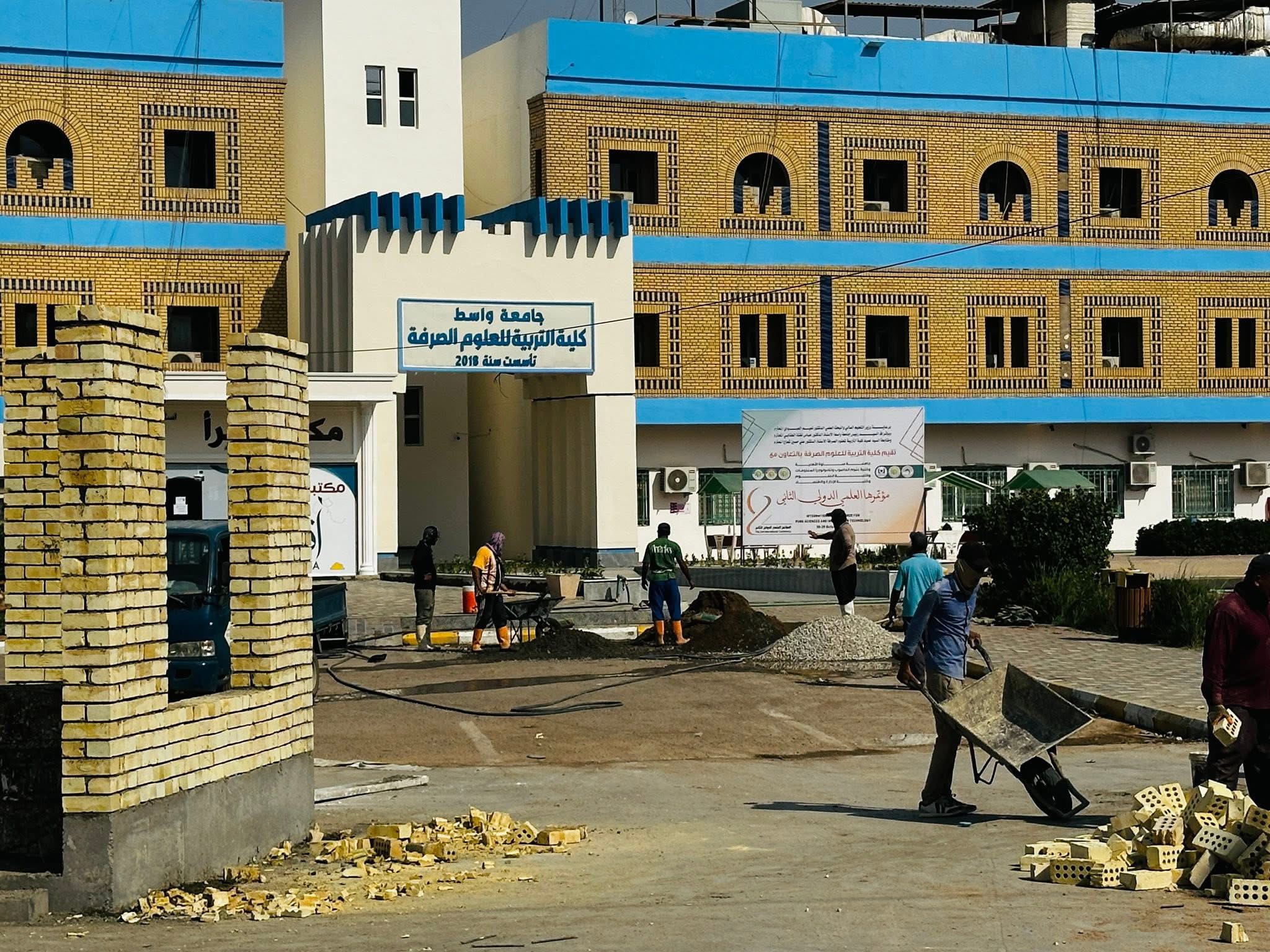 استمرار الأعمال في بناية كلية التربية للعلوم الصرفة رغم عطلة الجمعة