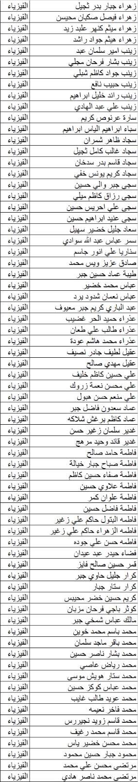 وقد بلغ العدد الكلي للطلبة المقبولين (393) طالباً وطالبة، موزعين على الأقسام العلمية كما يأتي: