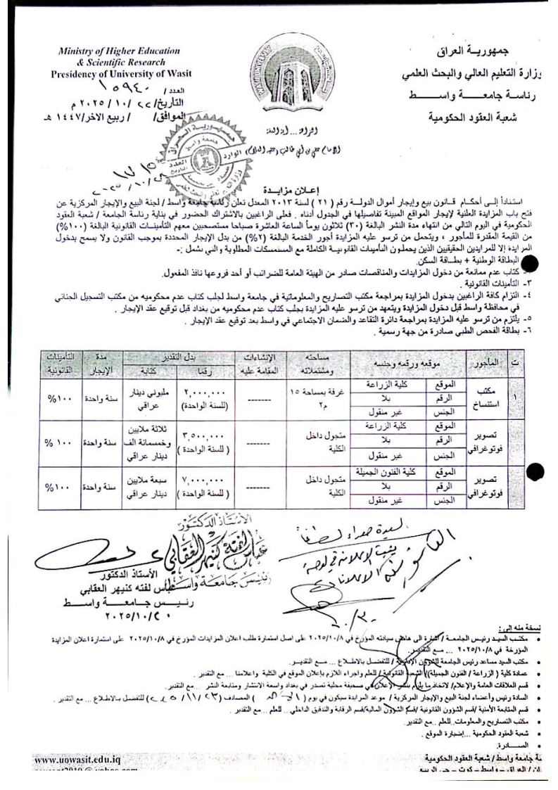 جامعة واسط تعلن نتائج القبول النهائي في الدراسات العليا للعام الدراسي 2025-2026