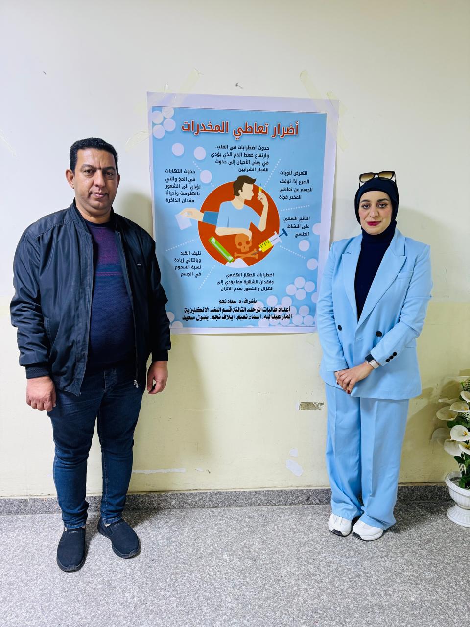 تضمنت الحملة التي اشرف عليها كل من الدكتورة سعاد نجم, والدكتور نصير زاير نشر مجموعة من البوسترات التوعوية للطلبة في مادة الارشاد التربوي والنفسي تتناول مجموعة الموضوعات ذات التأثير في المجتمع ومنها ( المخدرات ، الاكتئاب ، الانتحار ، العنف ، التنمر ، الابتزاز الإلكتروني ) ..