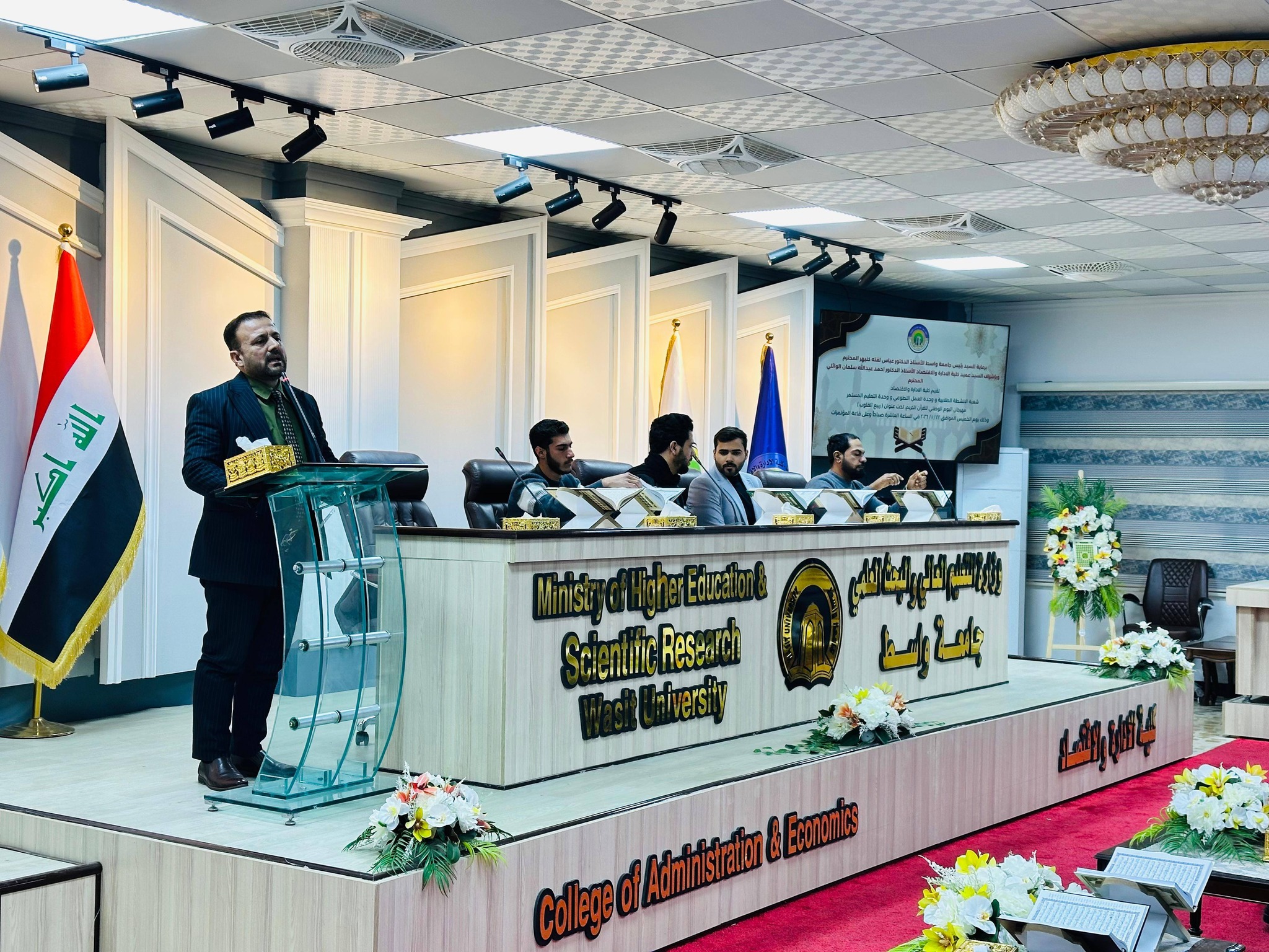 نظّمت شعبة الأنشطة الطلابية في كلية الإدارة والاقتصاد، بالتعاون مع وحدتي العمل التطوعي والتعليم المستمر، مهرجان (ربيع القلوب) احتفاءً باليوم الوطني للقرآن الكريم، وبمشاركة نخبة من القرّاء وبحضور أكاديمي وثقافي واسع. وهدف المهرجان إلى ترسيخ القيم القرآنية وتعزيز ثقافة التلاوة والتدبر بين الطلبة، وإحياء المناسبات الدينية التي تسهم في بناء الوعي الروحي والأخلاقي داخل الوسط الجامعي.