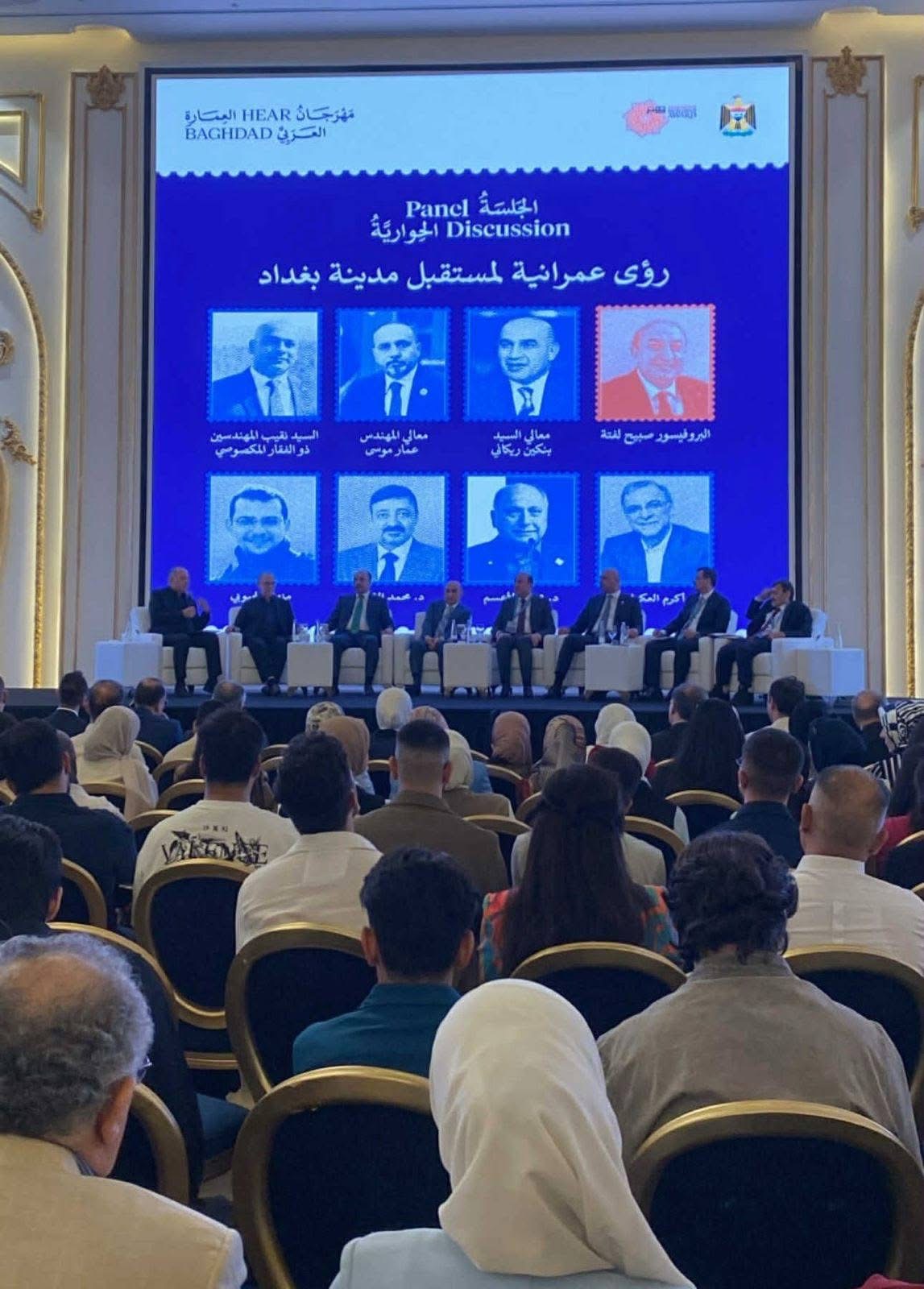 وفي اليوم الثاني من المهرجان، أقيمت الجلسة الحوارية الثانية بعنوان "رؤى عمرانية لمستقبل مدينة بغداد" في قاعة فندق قلب العالم، بحضور نخبة من المسؤولين والمعماريين والخبراء في القطاع العمراني.