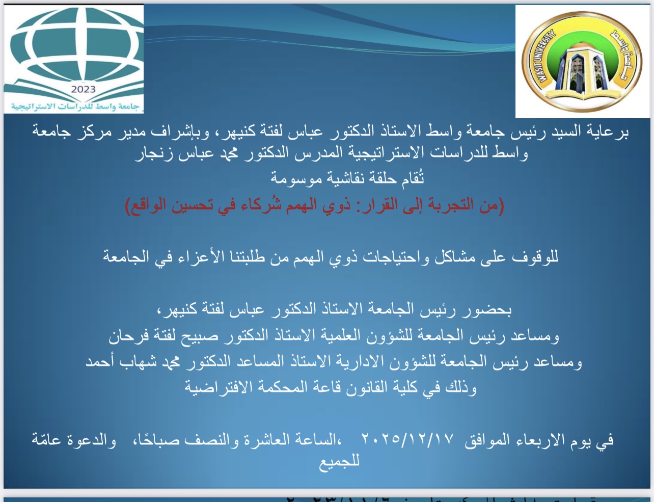 جامعة واسط تعلن نتائج القبول النهائي في الدراسات العليا للعام الدراسي 2025-2026