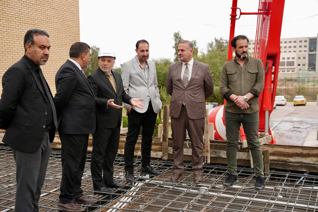 تابع رئيس جامعة واسط، الأستاذ الدكتور #عباس لفتة العقابيّ، برفقة مساعده للشؤون الإدارية الأستاذ المساعد الدكتور #محمد شهاب أحمد، ميدانياً سير العمل في مشروع إنشاء بناية المكتبة وقاعات المطالعة في القسم الداخلي للطلاب (مجمع الإمام الصادق عليه السلام) ، والاطلاع على مرحلة صب السقوف ضمن مراحل تنفيذ المشروع.واطلع رئيس الجامعة خلال الجولة على تفاصيل العمل ونسب الإنجاز، مستمعاً إلى شرح من مدير قسم الإعمار والمشاريع الدكتور حيدر كريم مصراع والكوادر الهندسية المشرفة على المشروع حول آليات التنفيذ والمواصفات الفنية المعتمدة، مؤكداً أهمية الالتزام بالجداول الزمنية المحددة ومعايير الجودة في التنفيذ.وأشار العقابي إلى أن إنشاء بناية المكتبة وقاعات المطالعة في الأقسام الداخلية يأتي في إطار سعي الجامعة إلى توفير بيئة دراسية ملائمة للطلبة المقيمين في الأقسام الداخلية، ودعم مسيرتهم العلمية من خلال توفير أماكن مخصصة للمطالعة والبحث العلمي تسهم في تعزيز التحصيل الأكاديمي.
